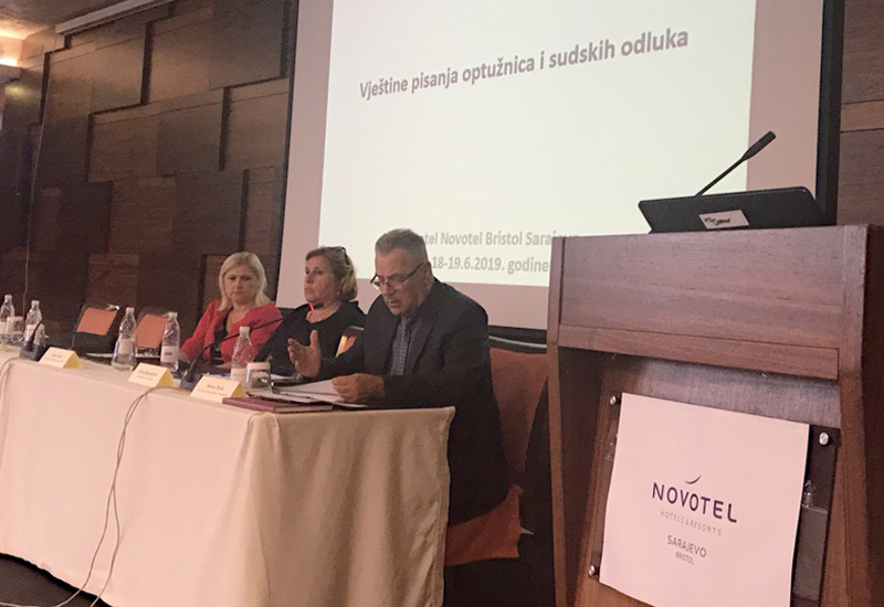 Dana 18./19. 06. 2019. godine u sali hotela “Novotel-Bristol” u Sarajevu održan je seminar o vještinama pisanja tužilačkih akata i sudskih odluka. Seminar je organiziralo Ministarstvo pravosuđa Sjedinjenih Američkih Država / OPDAT, u sklopu implementacije Programa stručnog usavršavanja za 2019. godinu, a saorganizatori su bila oba entitetska centra za edukaciju sudija i tužilaca.