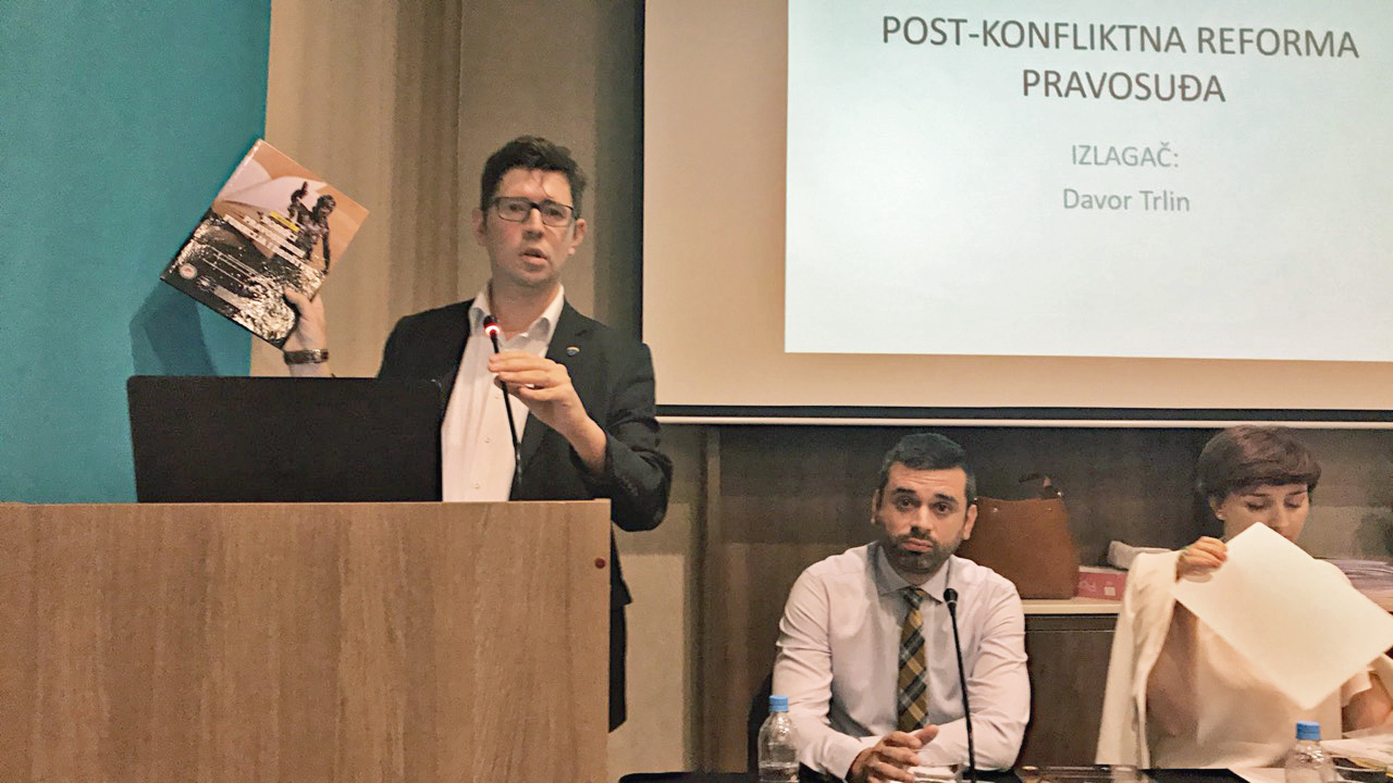 Drugog dana je gosp. Davor Trlin govorio o: raspodjeli pravosudne funkcije između BiH i užih političko-teritorijalnih jedinica; otvorenim pitanjima jurisdikcione zaštite u BiH, te o konfliktu pravnih normi/multirazinskoj zaštiti u primjeni ljudskih prava (sa vježbom koja je obuhvatala primjenu prava EU i EKLJP u slučaju povezanom sa diskriminacijom po osnovu seksualne orijentacije, sa posebnim osvrtom na vremensko važenje evropskog prava u domaćem pravnom sistemu, na primjerima Austrije i BiH, uz komparaciju).