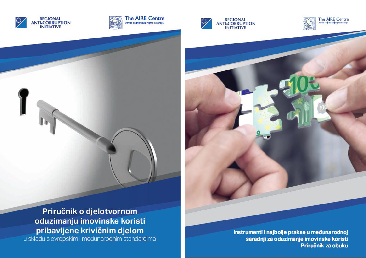 Dana 10.10.2019. godine, u prostorijama Centra za edukaciju sudija i tužilaca u Federaciji Bosne i Hercegovine, Savjet o pravima pojedinaca u Europi (AIRE centar) i Regionalna antikorupcijska inicijativa (RAI) predstavili su Priručnik o djelotvornom oduzimanju imovinske koristi i međunarodnim standardima i Priručnik o mehanizmima i primjerima najbolje prakse međunarodne saradnje u postupku oduzimanja imovinske koristi.