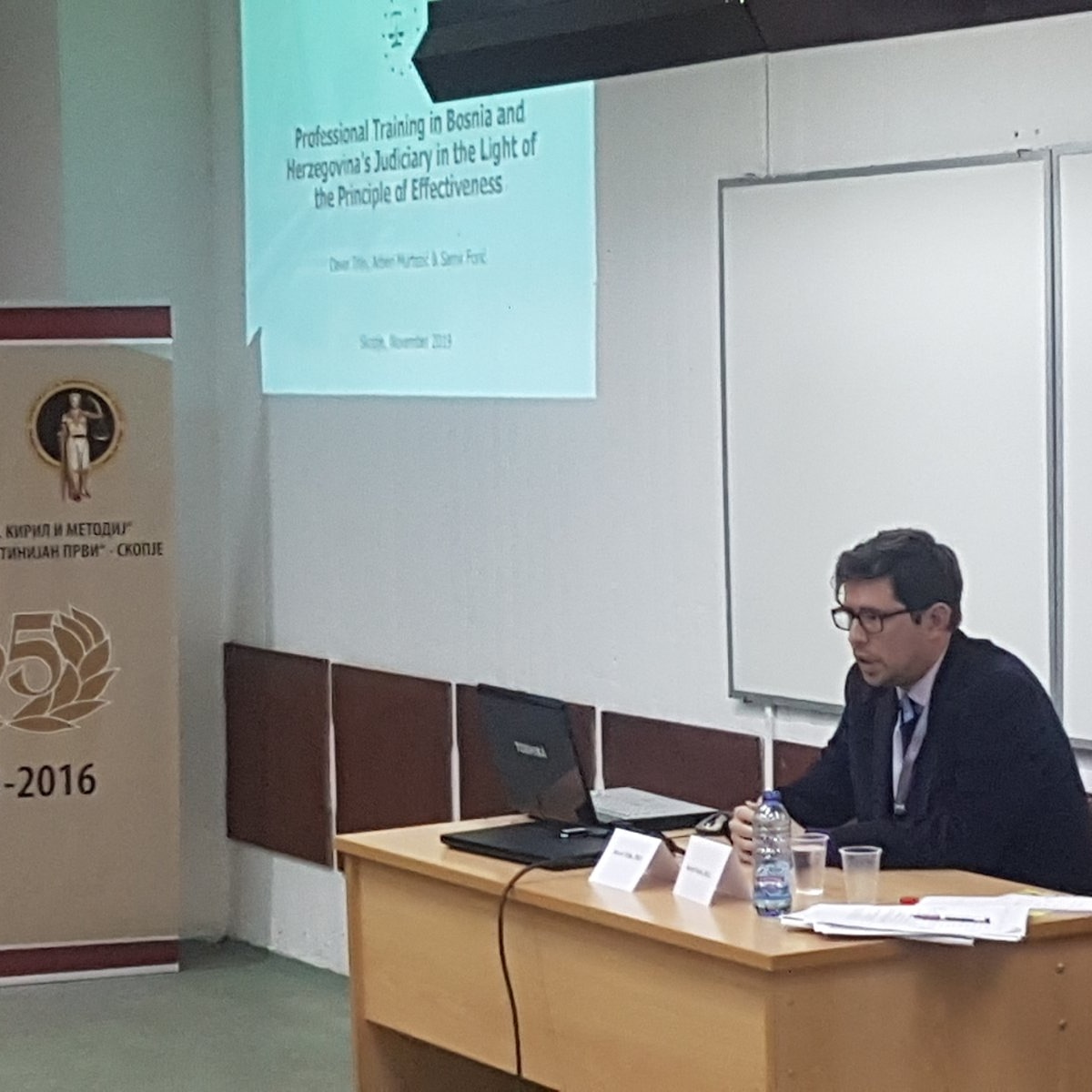 Na naučnom skupu sa međunarodnim učešćem “Tranzicija pravnih sistema: 30 godina nakon pada Berlinskog zida”, koji se 08. 11. 2019. održao na Pravnom fakultetu “Justinijan prvi” u Skoplju, temu “Profesionalna obuka pravosuđa u Bosni i Hercegovini u svjetlu principa efektivnosti” su pripremili/izložili Dr. sci. Arben Murtezić i Dr. sci. Davor Trlin, Direktor i stručni savjetnik u JU CEST F BiH, te Dr. sci. Samir Forić, viši asistent na Fakultetu političkih nauka Univerziteta u Sarajevu.