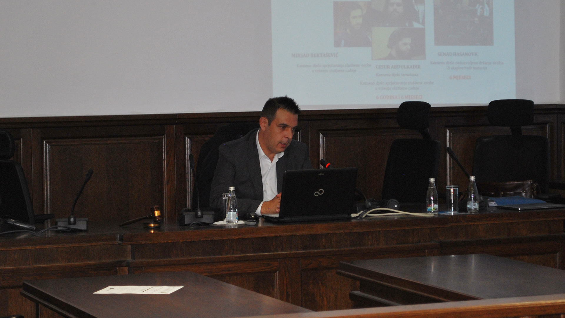 Prvog. dana predavač je bio gosp. Dubravko Čampara, tužilac Tužilaštva BiH, koji je govorio o dosadašnjim iskustvima i očekivanjima istraga i procesuiranja krivičnih djela u vezi s borcima u strabim paravojnim formacijama, a drugi dan je izlaganja imao gosp. Ćazim Hasanspahić, tužilac Tužilaštva BiH, koji je govorio o pripremi optužnice za krivična djela u vezi s borcima u stranim paravojnim formacijama i izvođenju dokaza pred sudom, sa posebnim osvrtom na dokaze pribavljene putem međunarodne pravne pomoći i dokaze sa ratišta pribavljene putem međuagencijske saradnje. Oba dana je gosp. Kimball sačinio paralelu sa sistemom i praksom borbe protiv terorizma u Sjedinjenim Američkim Državama, te sa učesnicima i edukatorima podijelio svoja iskustva.