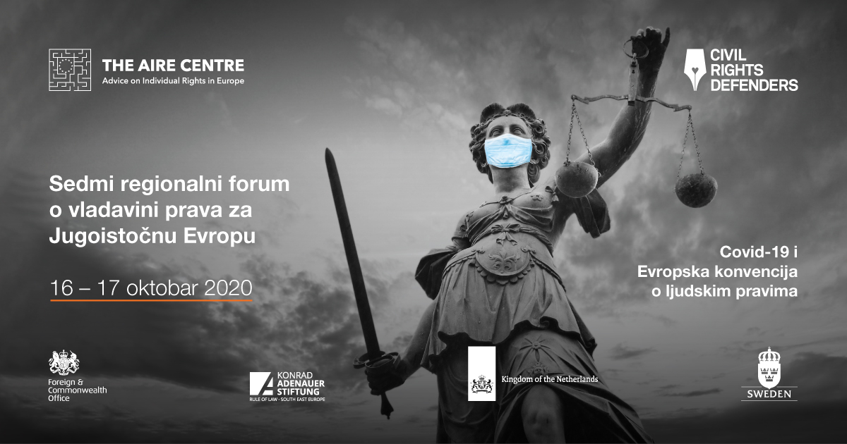 Dostavljamo Vam poziv za praćenje Sedmog regionalnog foruma o vladavini prava za Jugoistočnu Evropu a koji organizuju AIRE centar Program za Zapadni Balkan i Civil Rights Defenders, uz podršku Vlade Ujedinjenog Kraljevstva, Vlade Kraljevine Švedske, Fondacije Konrad Adenauer i Ministarstva vanjskih poslova Kraljevine Holandije.