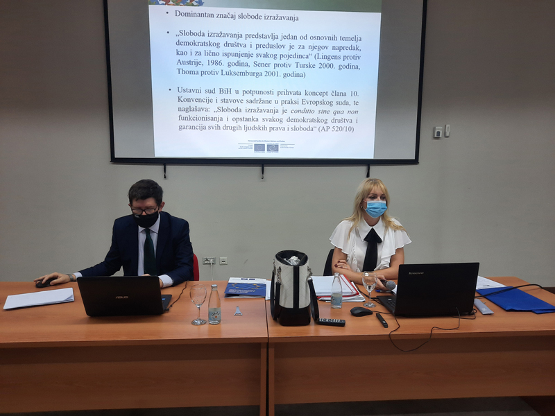 Obuka o krivičnopravnim aspektima govora mržnje obuhvatila je diskusiju o međunarodnom okviru u BiH, dvostruki pristup Evropskog suda za ljudska prava i relevantnu praksu Ustavnog suda BiH. Edukatorica govorila o građansko pravnoj odgovornosti govora mržnje kroz primjer Republike Hrtvatske, te primjeni standarda Europskog suda za ljudska prava od strane pravosudnih organa. Eksperti su prezentovali i na temu krivična djela počinjena iz mržnje.