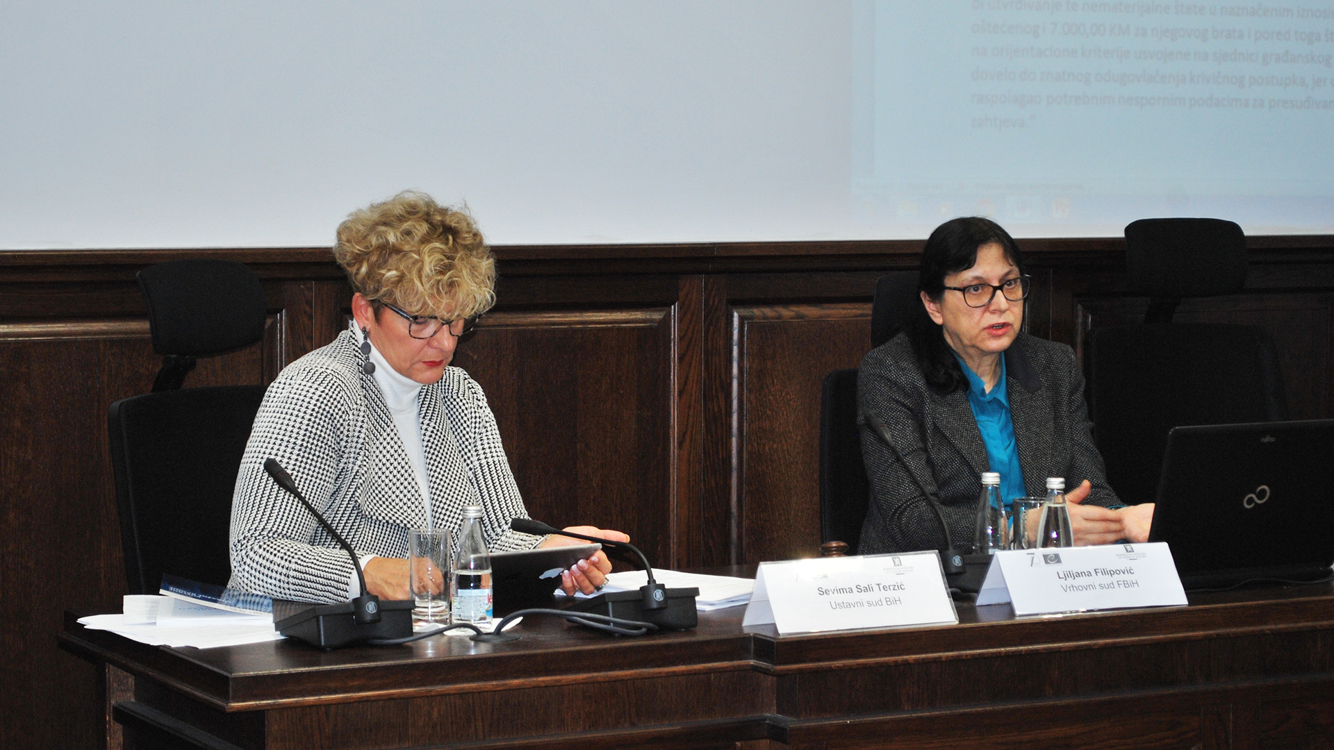 Seminar je nastavljen predavanjem sudije Evropskog suda za ljudska prava, gospodina Farisa Vehabovića koji je istakao: „... da je ovo živa materija kojoj se treba posvetiti posebna pažnja i da je potrebno prije svega uspostaviti sistemske mehanizme praćenja prakse...“, i moderatora/edukatora na seminaru, gospođe Elme Veledar- Arifagić.