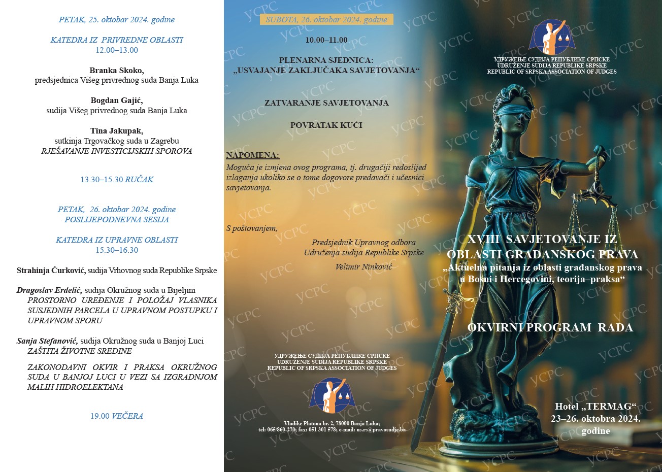 Okvirni Program rada XVIII Savjetovanja iz građanske oblasti možete preuzeti OVDJE.