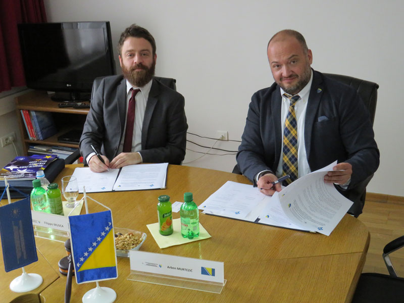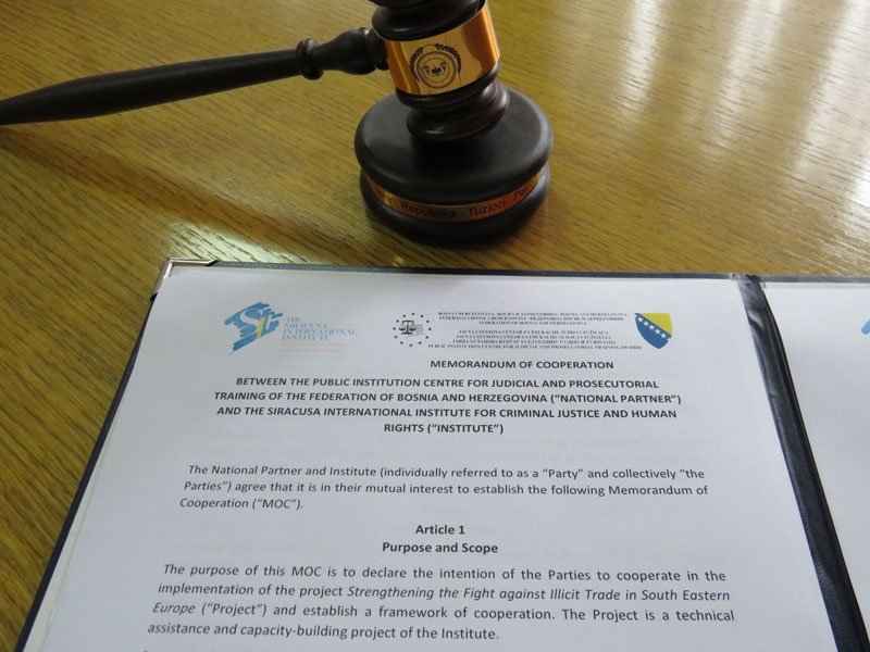 Direktor Centra za edukaciju sudija i tužilaca u FBiH, Arben Murtezić i Zamjenik generalnog direktora Međunarodnog instituta za krivično pravo i ljudska prava u Sirakuzi, Filippo Musca, potpisali su Sporazum o saradnji i učešću u međunarodnom projektu sprječavanja nezakonite trgovine.