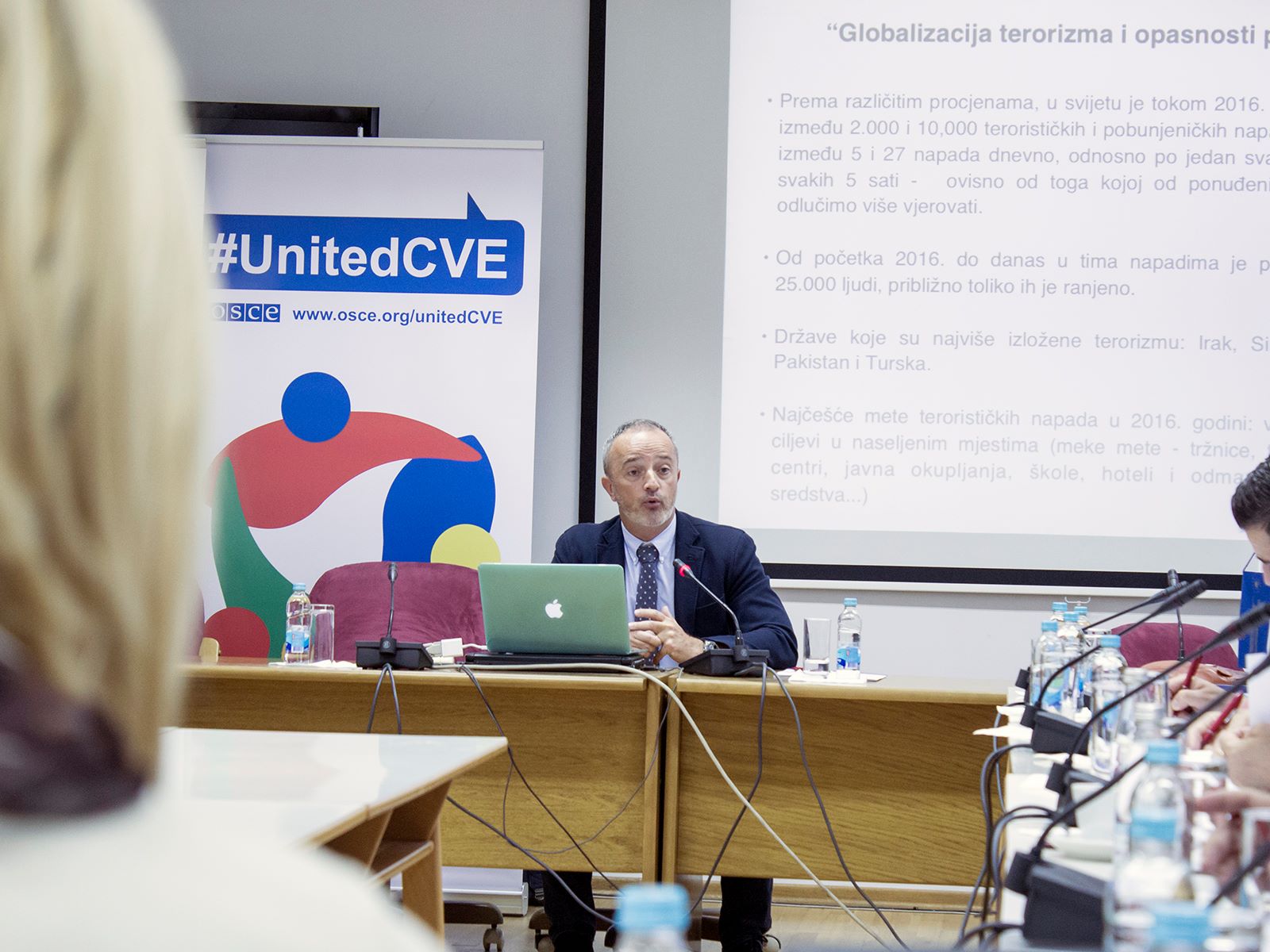 Na seminaru je prvog dana gosp. Dr. Vlado Azinović, profesor Fakulteta političkih nauka u Sarajevu je govorio o trendovima u Bosni i Hercegovini. Gosp. Dubravko Čampara, tužilac Tužilaštva BiH i gosp. Mirsad Crnovršanin, stručni savjetnik u Tužilaštvu BiH koji su učesnicima predstavili domaći pravni i institucionalni okvir u svjetlu međunarodnih pravnih instrumenata, prezentovali istrage i izabrane slučajeve procesuirane pred Sudom BiH. Takođe su govorili o dobroj praksi u međuinstitucionalnoj saradnji i razmjeni podataka. Prvi dan seminara je obuhvatio i temu odnosa rodnih prava i terorizma, koju je izložila gosp. Lejla Hadžiahmić, iz Misije OSCE-u BiH.