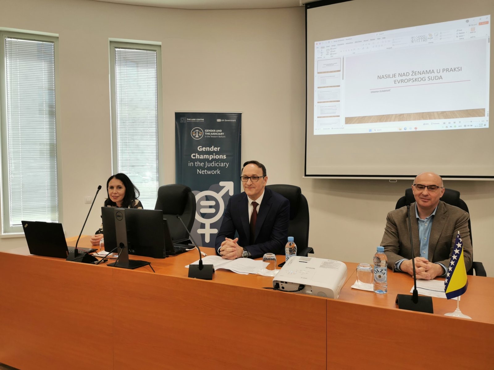 Publikacije su predstavile članica regionalne Mreže sudija i sutkinja posvećenih jačanju rodne ravnopravnosti, Lejla Konjić Dragović, sutkinja Suda Bosne i Hercegovine i Ermina Dumanjić, šefica Odjeljenja za ustavno sudsku praksu u Ustavnom sudu Bosne i Hercegovine, a koje su govorile o rodnoj ravnopravnosti, praksi Evropskog suda za ljudska prava, te o femicidu, uključujući i izazove u praksi.